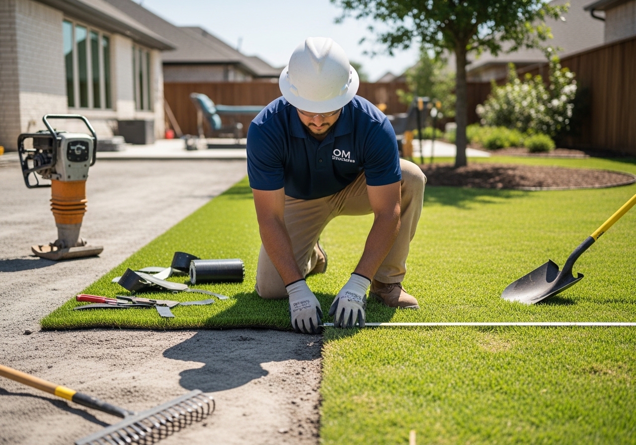 Contact OM Structures today for expert artificial turf installation and landscaping services in Central Texas.